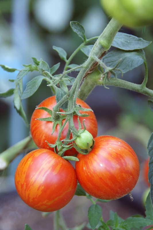 Die Früchte sind orange-rot gestreift und haben ein angenehm süß-säuerliches Aroma. Die Pflanzen sollten regelmäßig ausgegeizt und an Schnüren oder Stäben gezogen werden.